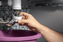 Entupimentos no lava-loiça são comuns devido ao acúmulo de gordura e restos alimentares.